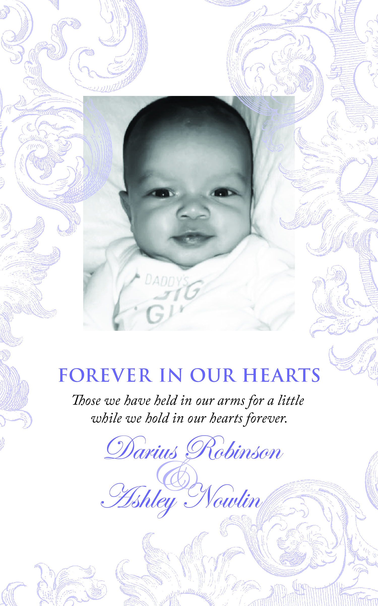 Please use the contact form if you would like to share your baby’s Memorial Card/Birth Announcement. I would be honored to post it on Dekar’s memorial site!